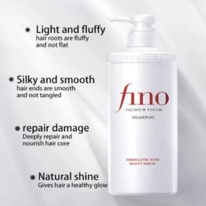 Shiseido Fino Premium Touch Hair Shampoo is the perfect hair care product for damaged dry hair by weather changes and UV-ray and color/perm treated hair. It is formulated with royal jelly EX to moisturize, PCA (Para-chloroamphetamine) to strengthen, and Lipidure EX to repair. These three major effects of moisturizing, strengthening, and repairing make your hair purely healthy from the core.